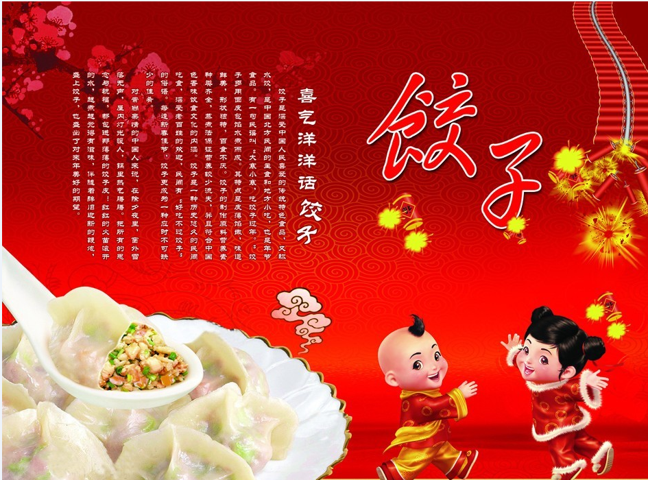 离家在外的游子都要不远千里万里赶回家来,全家人要围坐在一起包饺子过年,饺子的作法是先和面做成饺子皮,再用皮包上馅,馅的内容是五花八门,各种肉、蛋、海鲜、时令蔬菜等都可入馅,正统的饺子吃法,是清水煮熟,捞起后以调有醋、蒜末、香油的酱油为佐料沾着吃。也有炸饺子、烙饺子(锅贴)等吃法。